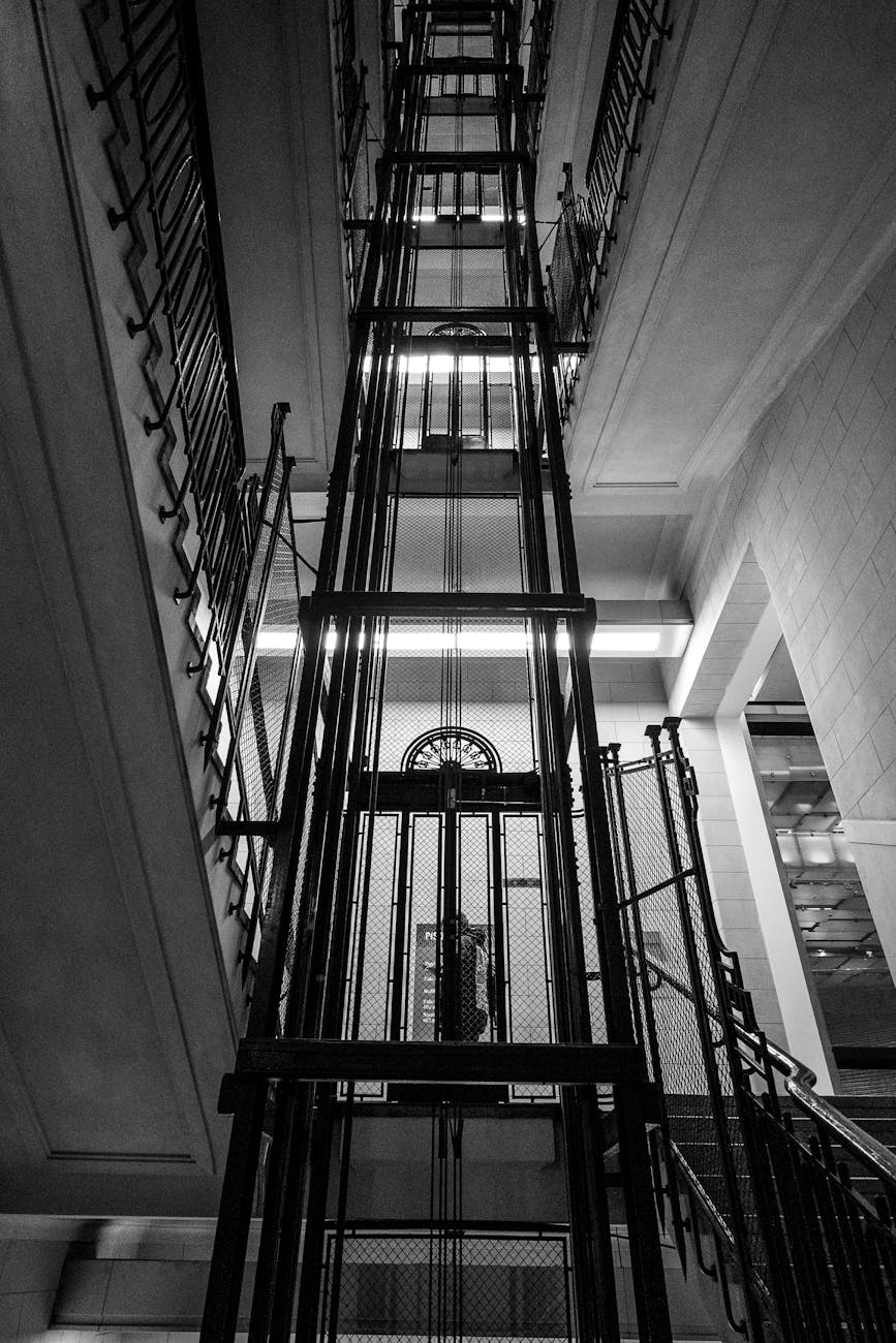The brass in her tiny 2 metre by 2 metre work space has been polished to perfection by the head cleaner, Stan, who knows she’s leaving soon. He too has been counting the days. She presses the button to open the doors. Johnno steps carefully into the lift, clinging to a bag and checking his watch. His lunchbreak is already over. Joan smiles, says ‘going down’ as though it’s the first time she’s said it. The doors shudder closed and the lift slowly descends. There’s a loud thump as it bounces like a tangled yo-yo.